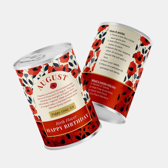Celebrate a birthday in the most thoughtful way with our Grow Your Own Birth Flower Tin. The perfect gift for her, for garden enthusiasts or those who love a thoughtful, unique birthday gift. Our eco-friendly, retro-style tin is customised with your choice of text (see images) and includes everything needed to grow stunning flowers: 1 x Birth Month Flower Tin; 1 x Packet of Flower Seeds; 3 x Peat-Free Grow Pots; 3 x Soil Discs; 3 x Eco Plant Markers