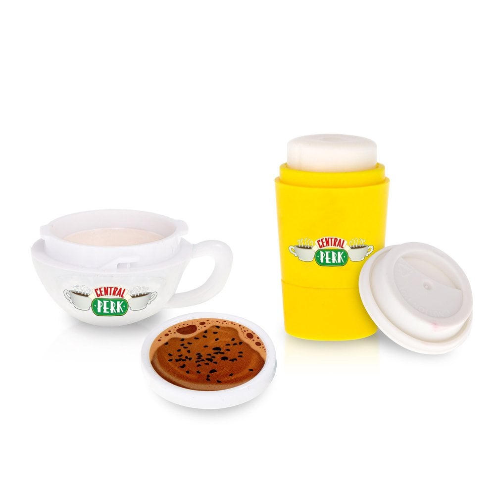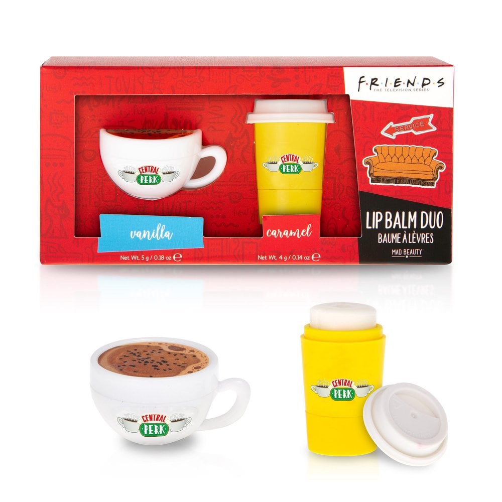 Retro Central Perk inspired Coffee Cup Lip Balm Duo. Revive dry lips with our Caramel & Vanilla scented balms