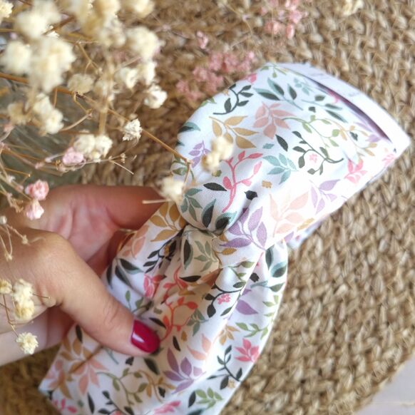 Juliette, a magnificent floral pattern in soft, pastel tones. Very easy to combine, it is a must-have available in each of our creations.ÿ Handmade in our Montpellier workshop, our Juliette care headband is the essential accessory for applying makeup, removing makeup or facilitating the application of beauty treatments. ÿIts beautiful elastic adorned withÿgoldÿat the back allows it to adapt to all body shapes and gives it a neat finish.ÿ And for those with an eye for detail, find makeup remover wipes and a face towel for a matching set.