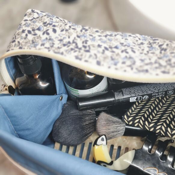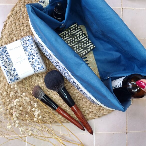 Discover our maxi two-tone basket bag in coated cotton, the essential accessory for your getaways and your daily life. Combining style, practicality and durability, this kit is much more than just storage: it's your beauty ally. Its advantages: Large capacity: Its generous dimensions allow you to carry all your essentials, from beauty products to essential accessories. No need to make choices, everything fits! Clever compartments: Two convenient compartments inside keep your bottles upright, preventing leaks and ensuring optimal organization. Transformable into a basket: Its unique shape allows it to be transformed into a basket, providing quick and easy access to your products. Made from coated cotton, it is easy to clean with a simple wipe of a cloth. Each maxi kit is a unique creation, handmade in our Montpellier workshop.