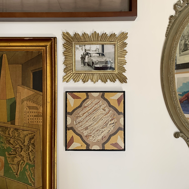 To hang your Lazarus Tile attach two small hooks 15cm apart.