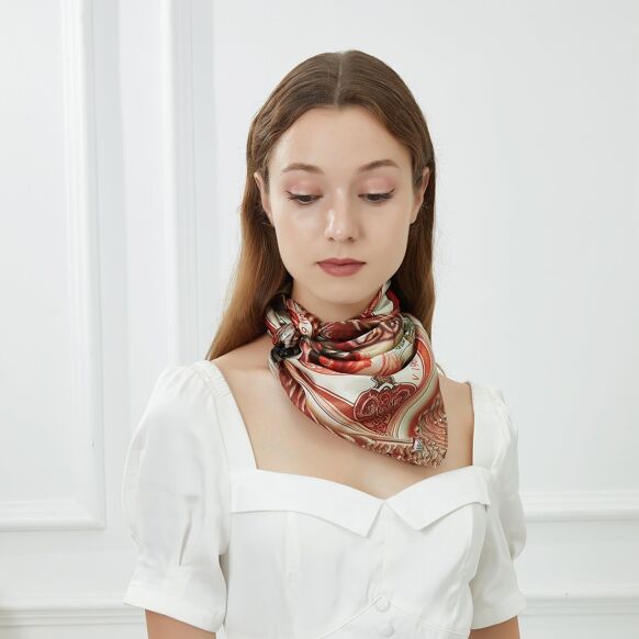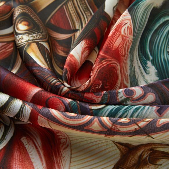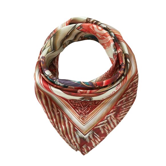 The Red Boat Silk Square draws its inspiration from maritime themes, featuring a splendid ship surrounded by anchors, ropes and compasses, evoking a spirit of nautical adventure. Made with the highest quality silk, this scarf exemplifies the elegance and richness of detail that the V1969 Italia brand embodies. Measuring 70x70cm, this design captures the essence of sailing with a vibrant colour palette, making each piece unique and captivating. Summary: Size: 70x70 cm Material: 100% silk Pattern: Ship and nautical elements Predominant color: Red and beige Brand: V1969 Italia Gift bag: Comes in a luxurious printed bag, ready to give as a gift.
