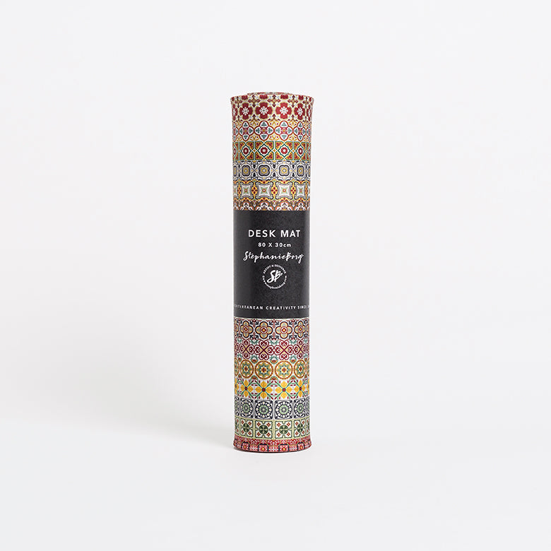 Set up a striking working surface anywhere you are with this Stephanie Borg® rubber desk and gaming mat, size 80cm x 30cm. It is a convenient and comfortable laptop and mouse base whilst also being very stylish depicting the Mediterranea pattern design.