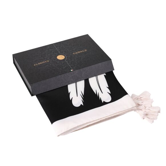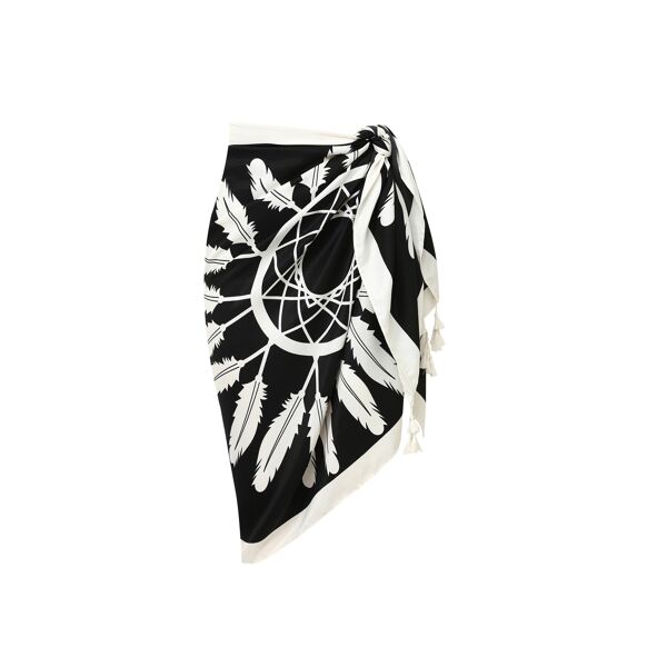 ZOEA pareo from the Alberto Cabale brand: For a trendy bohemian look this summer The ZOEA pareo from the Alberto Cabale brand is the perfect choice for all lovers of bohemian fashion. ? With its lucky Native American feather pattern, this sarong is both elegant and iconic. ? It is ideal for a sunny day at the beach or pool, but can also be worn as a fashion accessory to complete your outfit. Main Features : Printed pattern: Large monochrome Native American feather symbol, good luck charm., Size: 180cm x 90cm, for perfect coverage on the sand or as a lightweight summer garment, Versatile: Can be worn as a beach sarong, a summer shawl, or a trendy scarf to complete your outfit, Easy to maintain: Machine washable at 30øC for easy and practical use all summer long.ÿÿ